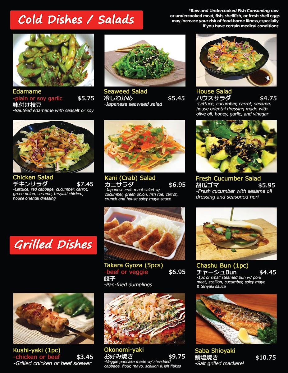- Cold Dishes and Salads: Light options like Seaweed Salad, Kani (Imitation Crab) Salad, Edamame (plain or soy garlic), Fresh Cucumber Salad, and House Salad provide fresh accompaniments or starters.
