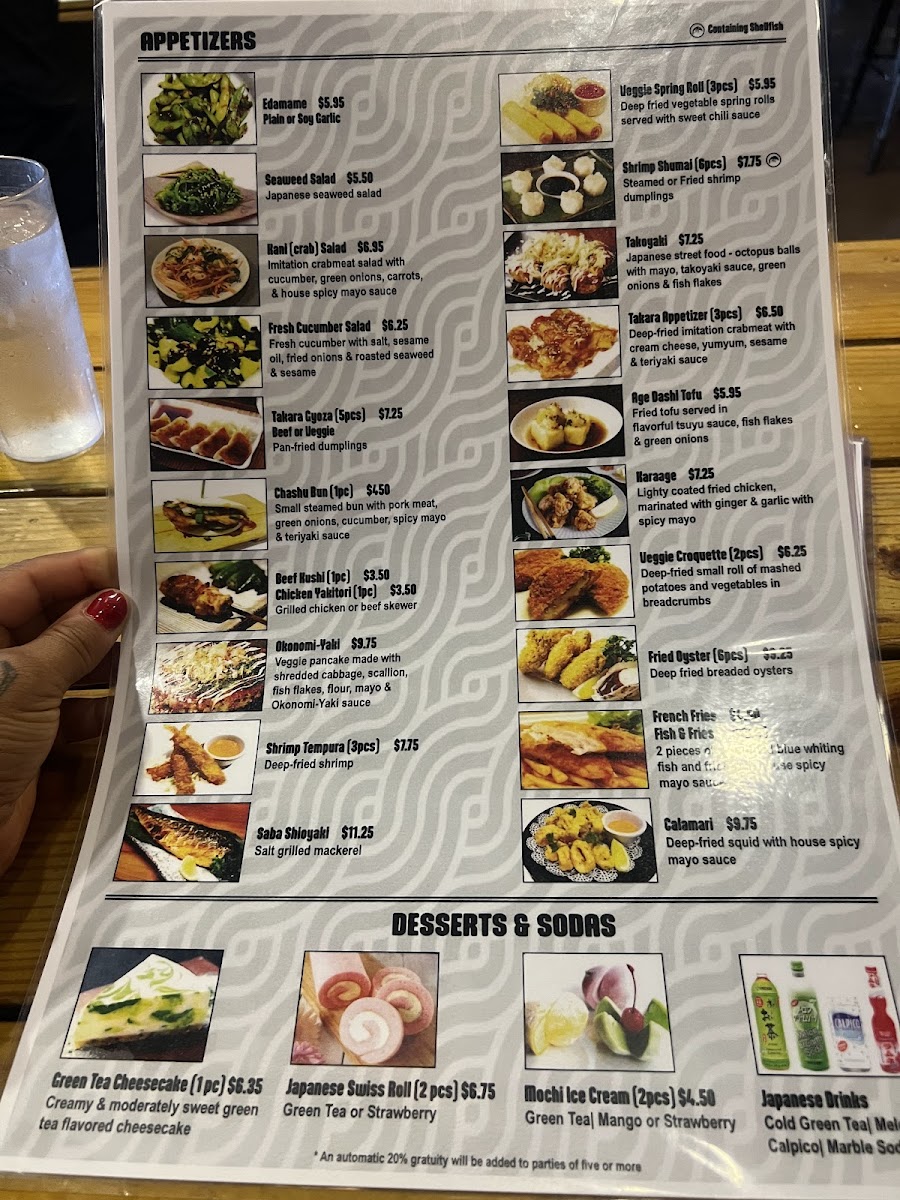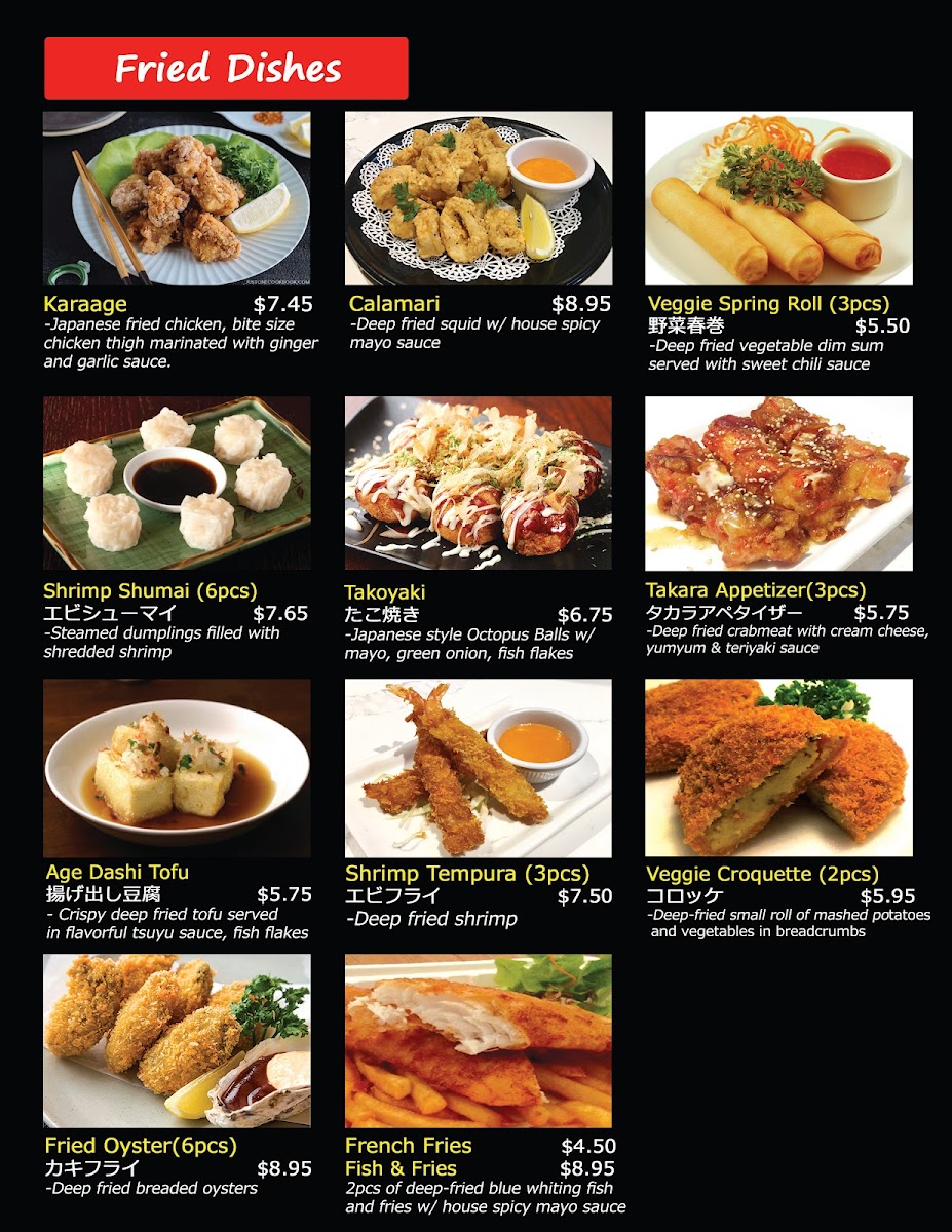 - Appetizers and Small Plates: Traditional izakaya items such as Takoyaki, Tonkatsu, Calamari, and Shrimp Tempura are offered, suitable for sharing or light dining.